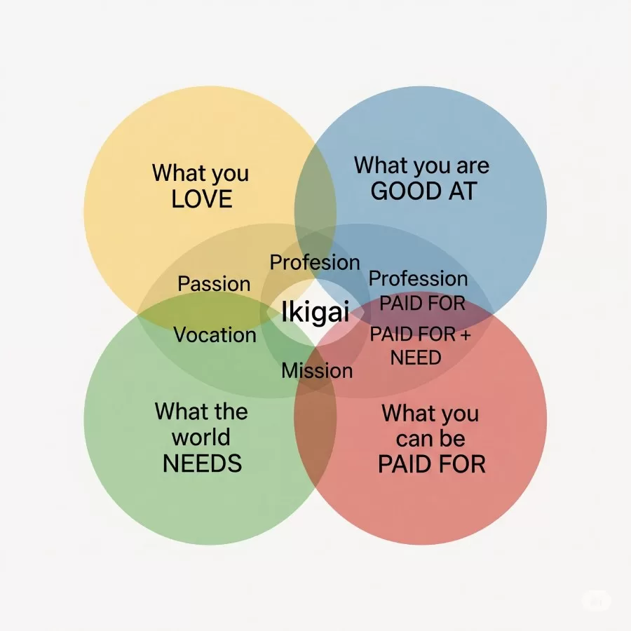 This circle is the heart of your Ikigai. Without love for what you do, even the most impressive career can feel empty.